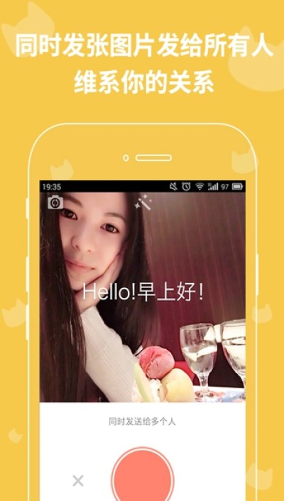 * 采用最新图聊模式,拍张照片打招呼。破解没有陌生人没有话题的最好办法就是告诉他你正在干什么。