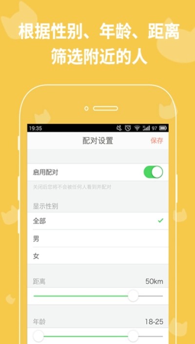 Miao是一款神奇的手机在线聊天交友软件,右滑表示喜欢,左划pass,只有互相喜欢的人才可以开始聊天。
