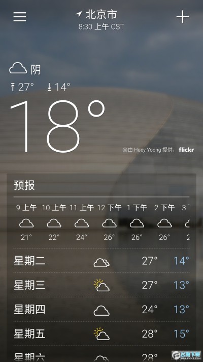 2、而且还有跟天气相匹配的风景照哦,非常的好看,查看天气也有诗意;
