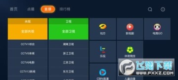 3、打开后,进入最上面一排的直播界面,然后界面有国内所有电视台频道还有全面的网络频道