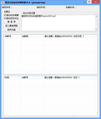 1、下载并打开莫言空间动态秒赞神器 2、登陆QQ账号,设置评论内容,选择秒赞和秒评论即可,支持挂机托盘