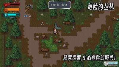 游戏中你可以种菜,养鸡,钓鱼等,并且要时刻小心野外的猛兽,当然还有丧尸。努力生存下去,并想办法击败所有Boss然后安全逃离吧!