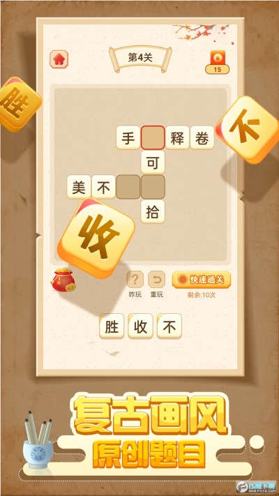 1.小清新的游戏风格,感受成语文化的魅力,在这里学习更多成语知识;