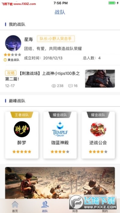 国内著名的顶尖战队入驻APP,战队星级系统,奔现王者战队,带您畅玩各路游戏,从此让您不再一个人战斗...更有战队组群,第一时间让您了解到战队消息...