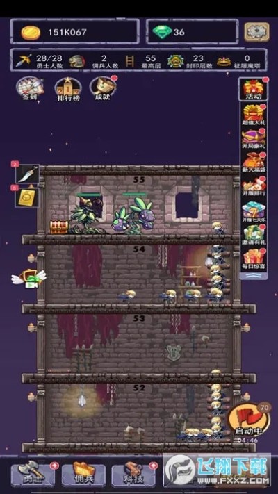 1、点击召唤与勇士,爬塔拯救公主,魔王塔里充满了不同的敌人需要你击败!