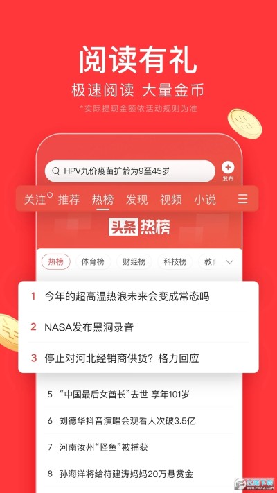 今日头条极速版内存小,省流量,使用流畅,为你提供有温度有价值的新闻资讯。
