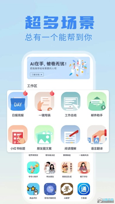 ·一键就可帮助用户生成内容,为你解决更多的使用难题。