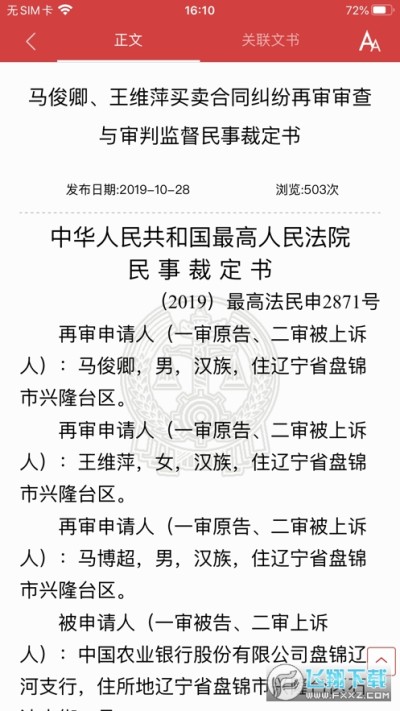 关联文书通过文书案号,将一、二审文书关联在一起显示,客观、完整的展现案件的最终结果。 关联文书会显示文书的审理程序、审理法院、案号、裁判日期、结案方式五项信息。