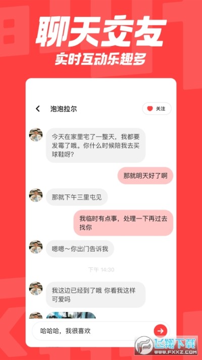 翻咔这款聊天软件有一个有趣的特点,就是可以随机匹配陌生人聊天,这样可以认识更多的人,不过需要注意安全哦,和陌生人聊天一定要小心,不要随便透露个人隐私信息。翻咔是一个充满生活情趣的交友软件,大家可以来这里交友、聊天,享受愉快的社交时光。但是,小朋友们还是要注意自己的身心健康,不要过度沉迷于虚拟世界,要保持好学习和生活的平衡哦!