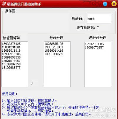备注:目前软件接口有限制,自己测试 单个ip一次只能验证几个,但是重启软件几十秒后或者换ip后又可以检测,现在一天也加不了几个人,完全够用了。