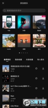 2、打开音频设置界面,然后点击“音乐”打开添加音乐界面,在这里可以自由选择音乐素材