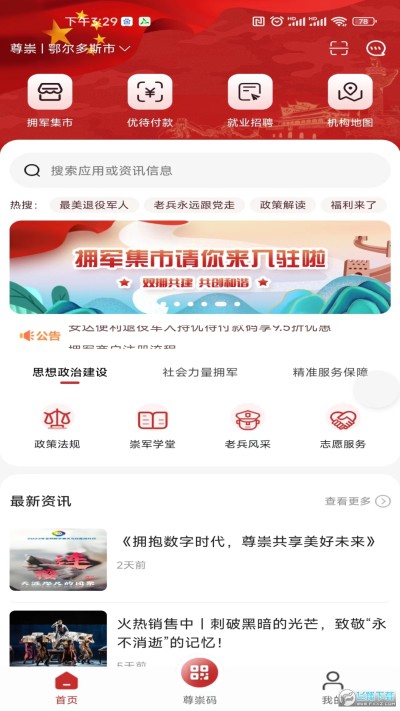 尊崇app官方下载2023最新版是一款专门为退役军人打造的手机软件,这款软件的功能丰富,为广大退役军人开展就业创业的志愿服务,还有各种政策宣传,是一款综合性服务平台,有需要的快来下载吧!