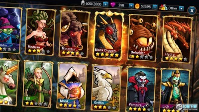 收集英雄,升级他们,用强大的武器、盔甲和神器装备他们,升级他们的能力和稀有度。