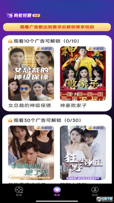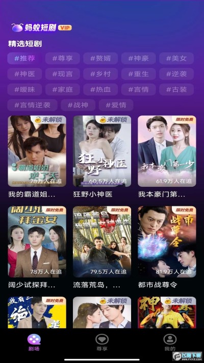 蚂蚁短剧app是一款安卓短剧播放平台,软件中包含超多不同类型的短剧,用户可以在线进行观看,现代都市、热血竞技以及青春校园等等题材,满足不同用户的观看需求,对软件感兴趣的话不妨点击下载试试!