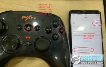 3、手柄关机状态,长按A键不松开,再按mode键,等指示灯快速闪烁立马松开手指。然后开启手机蓝牙开关,等待一会,选择搜索到的第一个蓝牙进行连接;