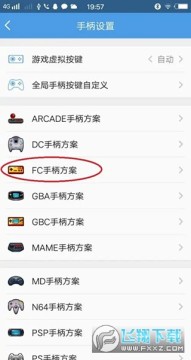 8、根据自己玩的游戏类型,每次进入游戏前先到手柄设置,找到自己玩的游戏类型,进行键位设置,返回在进入游戏。本教程以"FC手柄方案"进行设置;