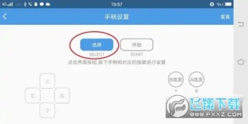 9、进入FC手柄设置,手指按触"选择",然后操作手柄上面的按键,把手柄的按键设置到游戏按键上,这时可以看到手柄设置界面的按键为蓝色涂满状态,表示设置成功。其他的按键一一对应设置好后,点击左上角返回自动保存;