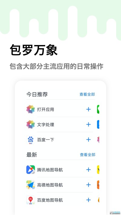 1、提供常用app的日常操作,如打开微信发送消息、打开浏览器搜索内容、选择文字进行复制翻译等。
