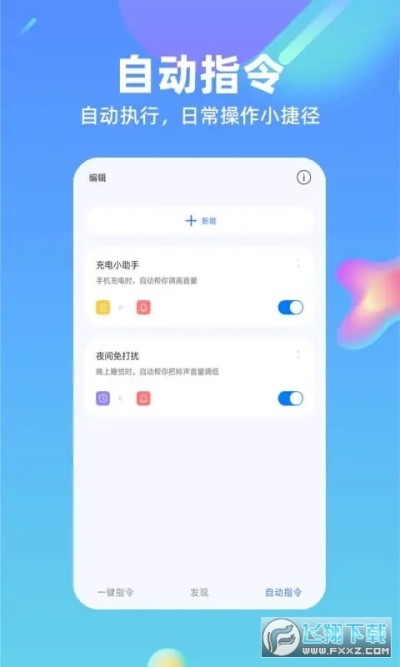 创建自己的自动指令,睡觉时间自动开启夜间免打扰指令;充电时调高音量指令等等;