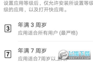 3、然后在应用等级页面,我们可以看到目前分为3周岁、7周岁以及18周岁等多个年龄等级;