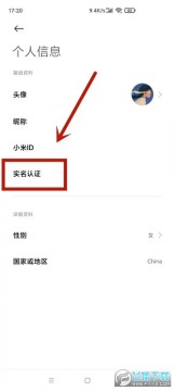 找到页面的实名认证选项并点击进入。