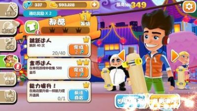 游戏中的滑板,人物角色,可以选择的余地很大,而且还有各种的日常的人物哦,途中就有跳跃达人,如果完成,会有些许奖励