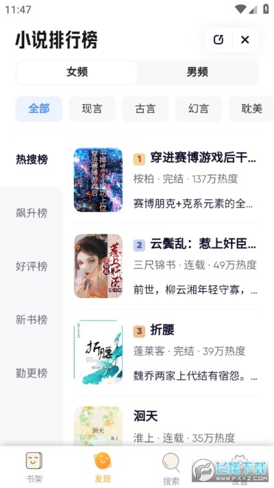 按照小说的内容性质对小说做了明确的区分,帮助用户更精准地找书。