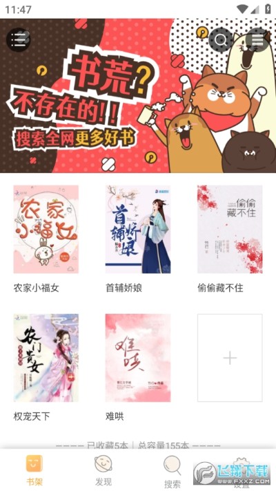 4.一键式找书不怕找不到书,也不怕你不告诉我们。一键搜书功能,你想看的就这么简单。