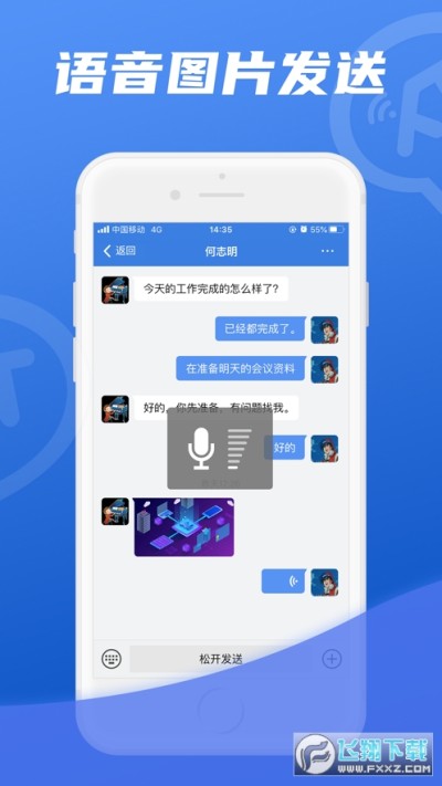 4、为员工打造的一款即时通讯的app,为了丰富大家的工作生活,功能涵盖聊、群聊、语音发送、图片发送等功能;