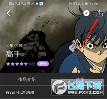 1、在手机中打开咚漫,点击打开一部漫画,点击右上角的下载。