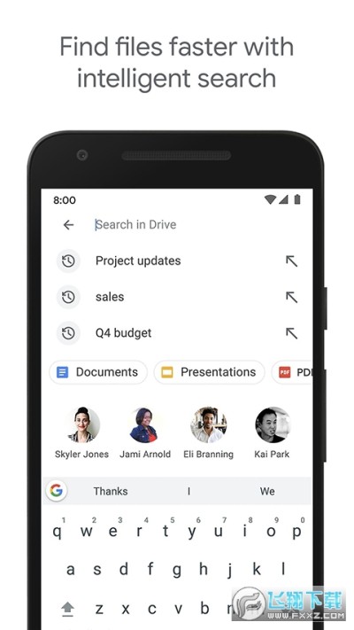 云端硬盘使用 Google 的人工智能 (AI) 技术,实时预测和显示对您而言重要的内容。云端硬盘运用快速访问和基于机器学习技术的增强型搜索等功能,识别重要的内容、协作者和活动,向每位用户显示可能需要关注的文件。