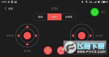 连接成功后,主界面上栏会显示云台的电量,模式,以及三轴的数据。