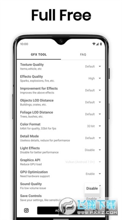 该软件的使用非常简单,用户在本站下载之后就可以直接进入软件通过各个选项设置成自己想要的帧数以及画质,应用后开启游戏即可。另外GFX工具箱最新版2023的所有功能还是完全免费的,有需要的用户可以来本站下载体验一下吧,让你吃鸡画质更高,玩起来更爽快。