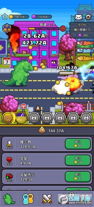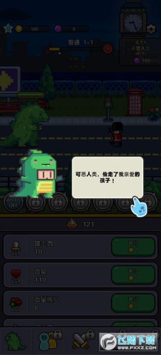 现在,你就扮演着大恐龙,通过消灭人类,摧毁建筑,破坏武器,获得积累,提升自己的力量。