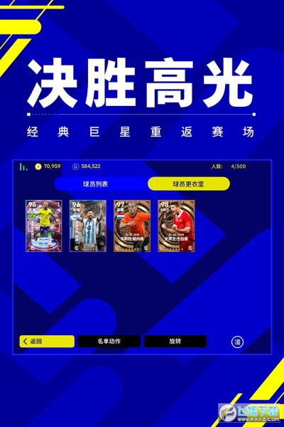 5、决胜高光球员--全新球员类型登场,重现球员生涯中最辉煌一刻。此类型球员部分带有特殊进球庆祝动作。