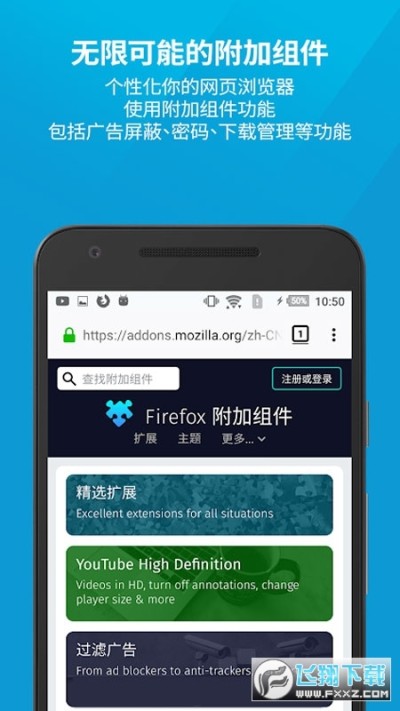 火狐浏览器(Firefox)官方版拥有超过一万个的 扩展(add-ons),提供各种不同的扩展功能,您可以简单的下载、安装这些扩展以增强您的火狐功能,帮助您更好、更个性化的体验网上冲浪。无论是在网上听音乐,看视频,购物,看新闻...都能找到相应的火狐浏览器(Firefox)扩展能帮助您提升体验,这里 是一些我们推荐给您的扩展精选。
