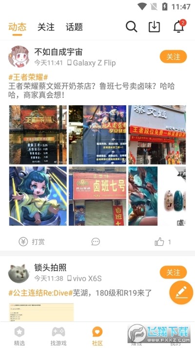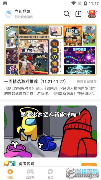 1、下载安装乐乐游戏后,用户就可以看到有精选、找游戏、社区、赚钱、我的五个板块;