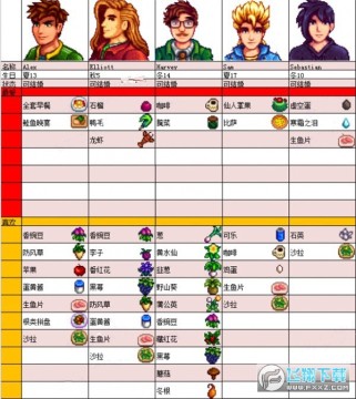 1、压力克斯,是攻略性的第一位男性NPC,爱好运动,他最喜欢吃荷包蛋、牛奶、土豆煎饼、鲑鱼拼盘,最喜欢鸡蛋、鸭蛋、宝石、料理。工业品、蔬菜、花、枫糖浆、水果,不喜欢手工艺品、讨厌垃圾、野草、罂粟、牙签、石头等。