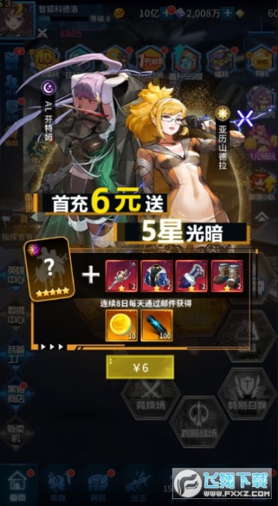 进入游戏后需要根据游戏内的引导指示领取上线福利和召唤一次英雄,上线福利领取后可获得一个超稀有暗系英雄和大量的升级材料和货币,英雄召唤结束后即可进入出击界面挑战BOSS