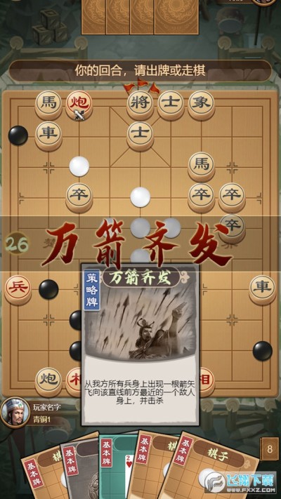 (1)游戏采取回合制,在自己的回合,出牌和移动象棋棋子只能选择一种。