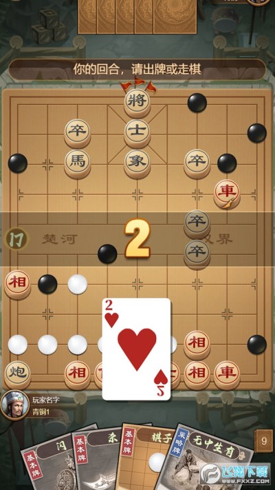 6、进入游戏如图,玩家在自己的回合内既可以打出手牌,也可以下象棋;
