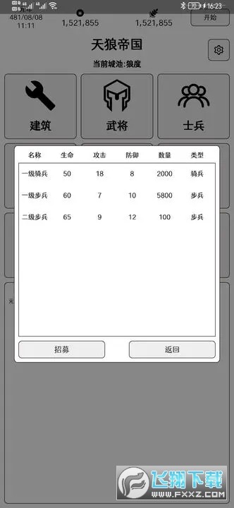 3、建造城池,解锁武将与士兵,发展军事防御力量。