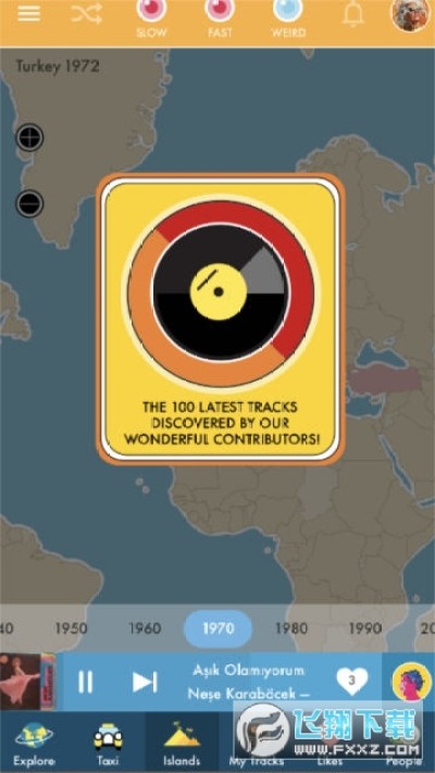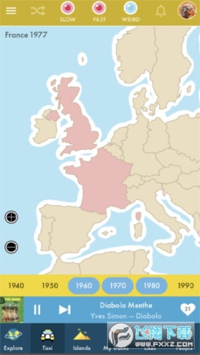 2、Radiooooo,一款让你在午后温暖的阳光下,静静欣赏带着岁月尘埃和时间印记的金曲,来一场跨越时空的音乐之旅的应用。
