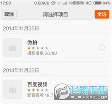 4、如果你需要全部清空应用商店中的记录,那么直接点击全选,然后全部选择之后,再点击删除就行了。
