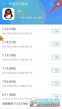 4、接着选择你想要下载的历史版本并点击后面的下载;