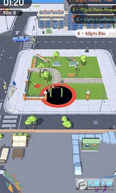 开始的时候你黑洞面积的大小是一样的,这个时候你要做的就是到处走(现在没有地图)去找资源。小的时候能够吃的东西不多,只有比你的黑洞小的才能吃,所以要远离的大的物品,比如说汽车。