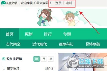 首先需要登录长佩文学官网,进入首页,找到登陆/注册,如图: