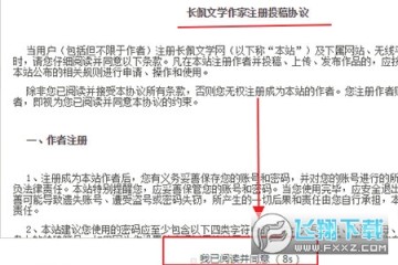 点击作者中心,页面跳转到长佩文学作家注册投稿协议,读完点击最下端同意选择框;