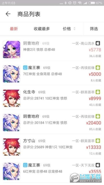 登录网易“藏宝阁”后就可以浏览您所在的服务器其他玩家出售中的商品了。