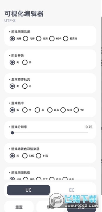 五、可视化编辑器,这个功能十分适合小白使用,因为它通俗易懂,当然你还可以选择保存/导出的是UC还是EC